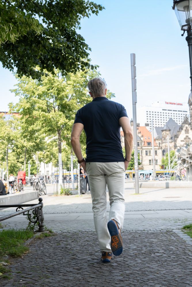- Kautschuksohle mit Nullabsatz, dadurch Entlastung der Wirbelsäule und Schonung der Gelenke, unterstützt die natürliche Körperhaltung
