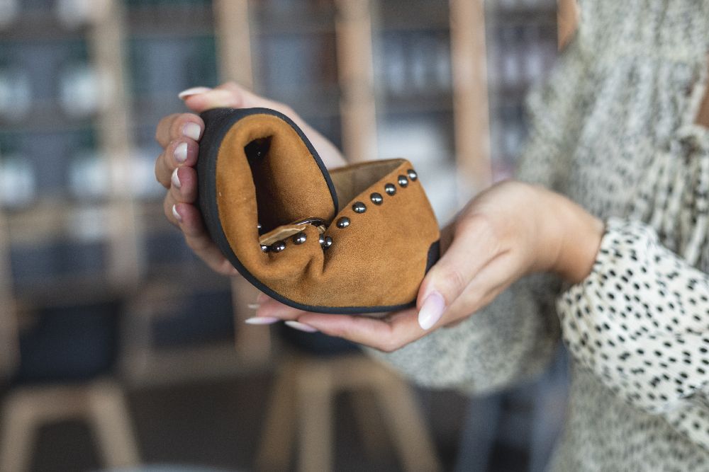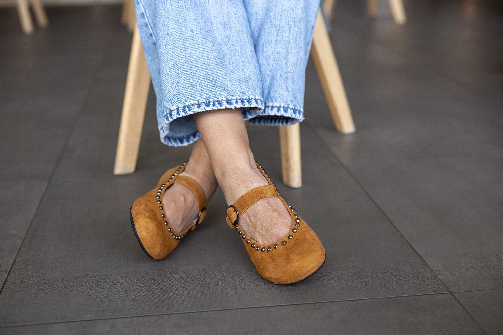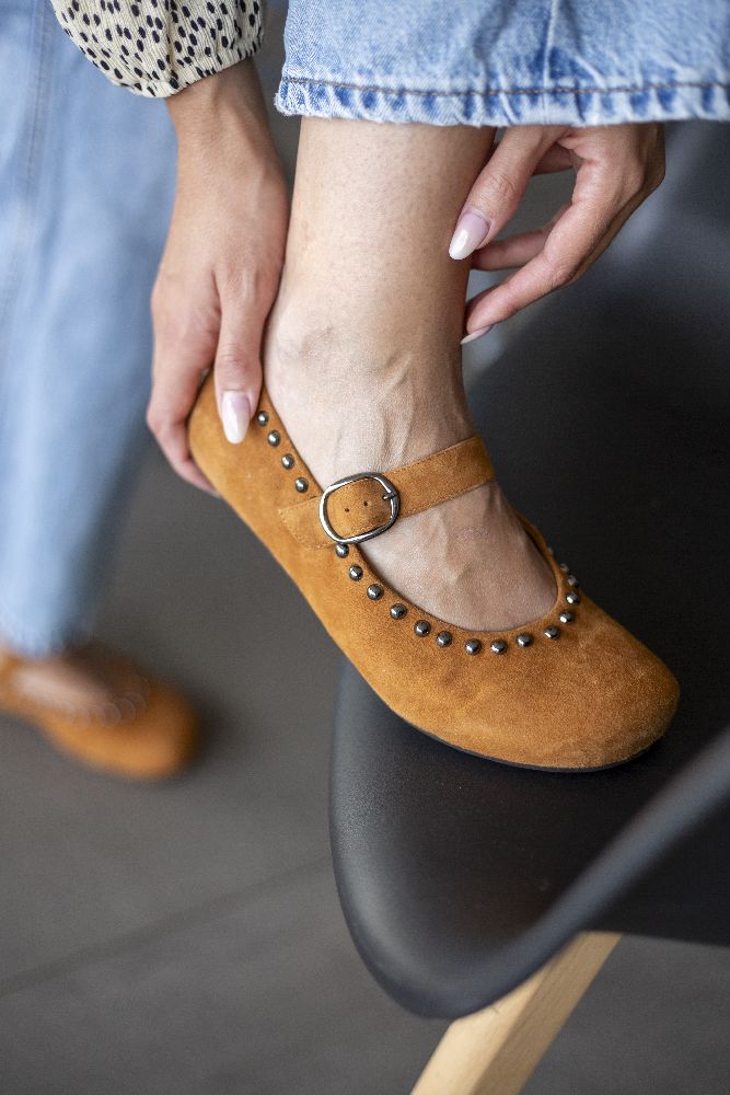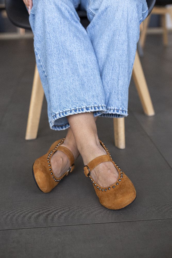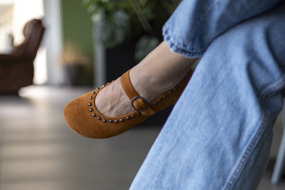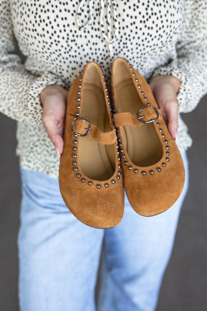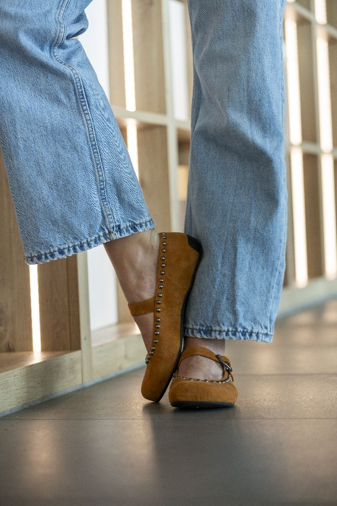 Dieqo Brown er vår splitter nye ballerinsko laget av brun semsket skinn. Dette smykkestykket er foret med runde nagler og gir alle antrekk et snev av glamour, uten å foregne den utrolige komforten du er vant til fra våre barfotsko.