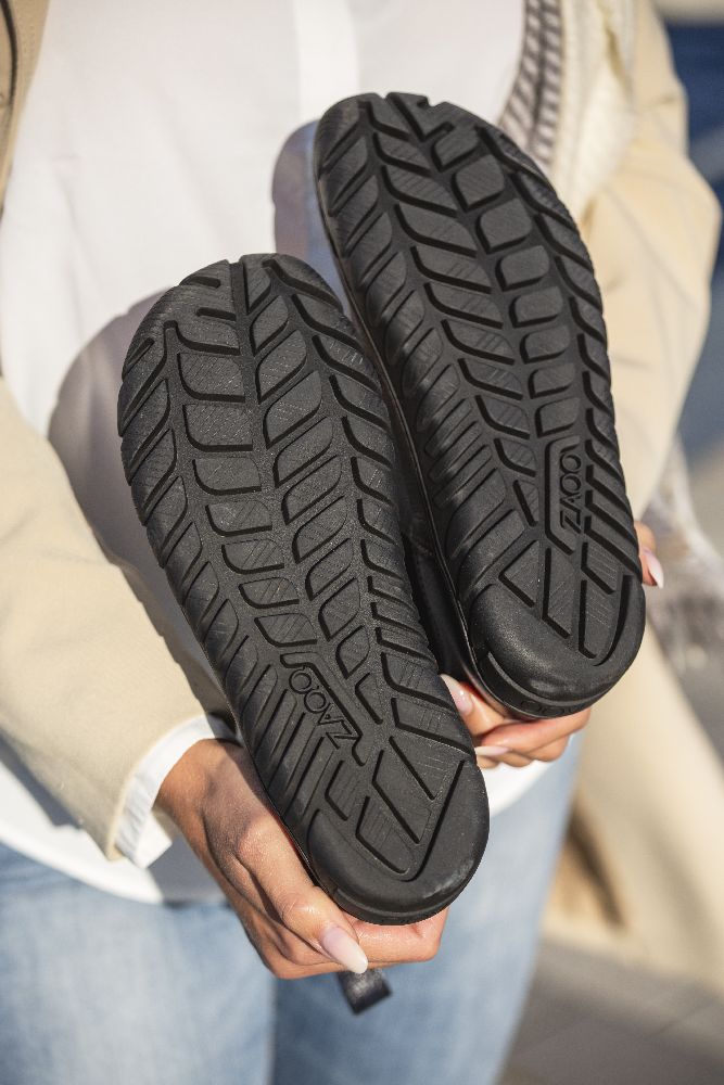 - Gummisåle med null hæl, og dermed lindrer ryggraden og beskytte leddene, støtter den naturlige holdningen