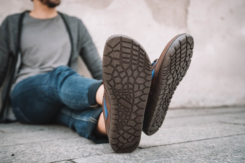 Den elegante barfootskoen for innledning imponerer med den naturlige og samtidig moderne fargekombinasjon av brun og blå. Den lave akselen kuttes også slik at anklene dine blir godt støttet på lengre stier og knekking.