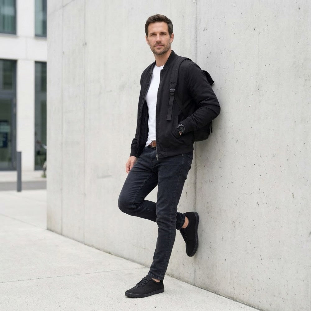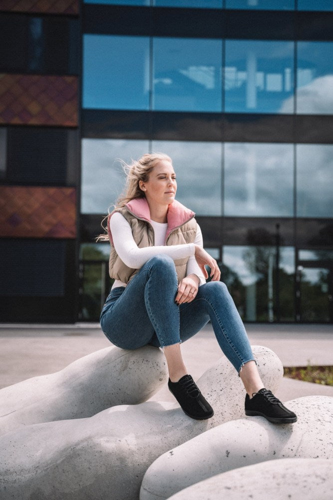 Jaq er din veganske, svarte sneaker som helt vil inspirere deg! Barfotskoen består av 100% veganske materialer og gjør ikke bare noe bra for føttene dine. Sneakeren gjør det også uten metalløyer.