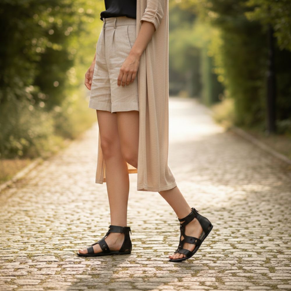Maroq var laget av spesielt mykt nappa skinn. Kutting eller ledning var i går, disse barfot sandalene kan lett strammes over glidelåsen festet bakerst og gi deg det beste grep.