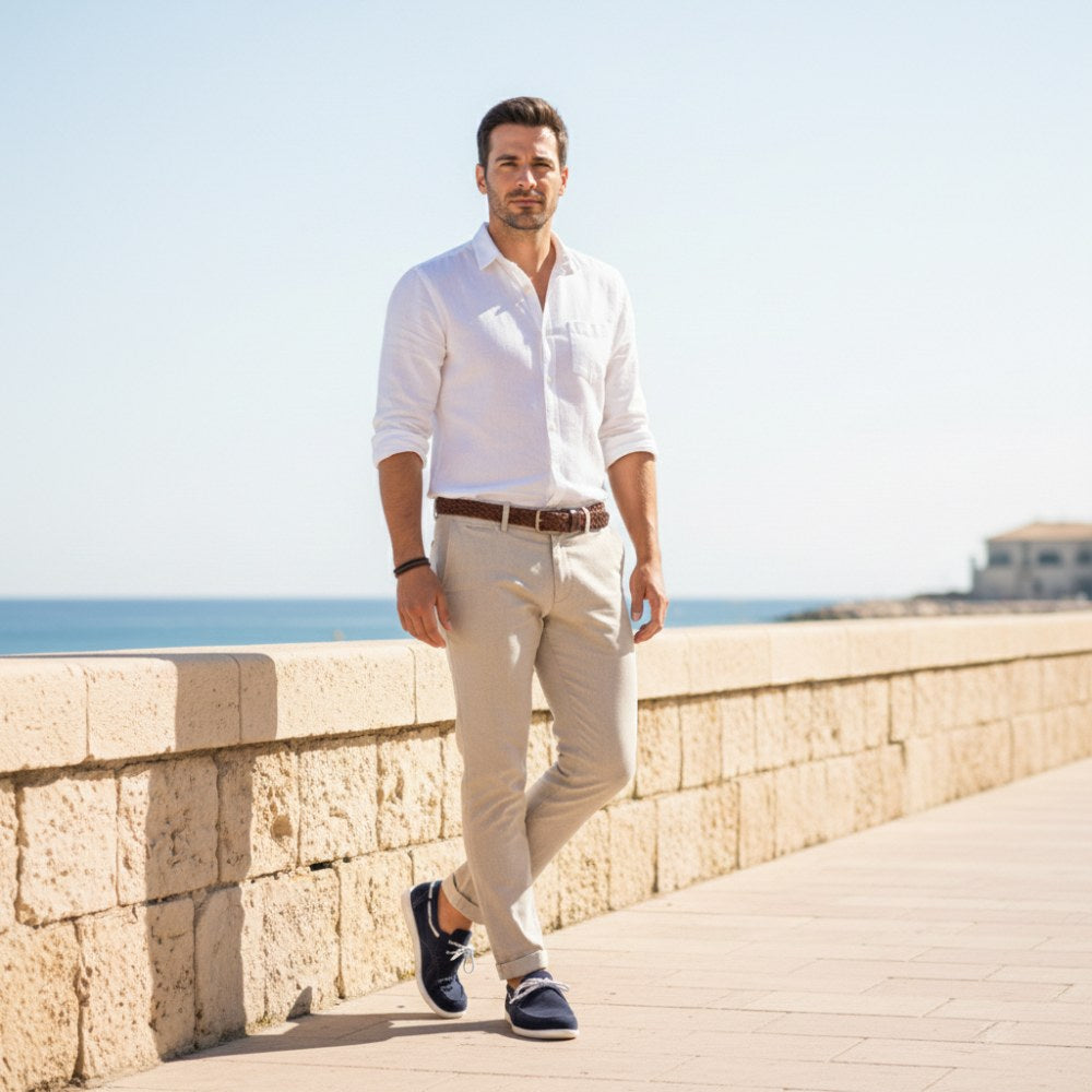 Qea Velors Blue Boots sko kombinerer maritim sjarm med barfot komfort - den ideelle følgesvennen for den moderne mannen.