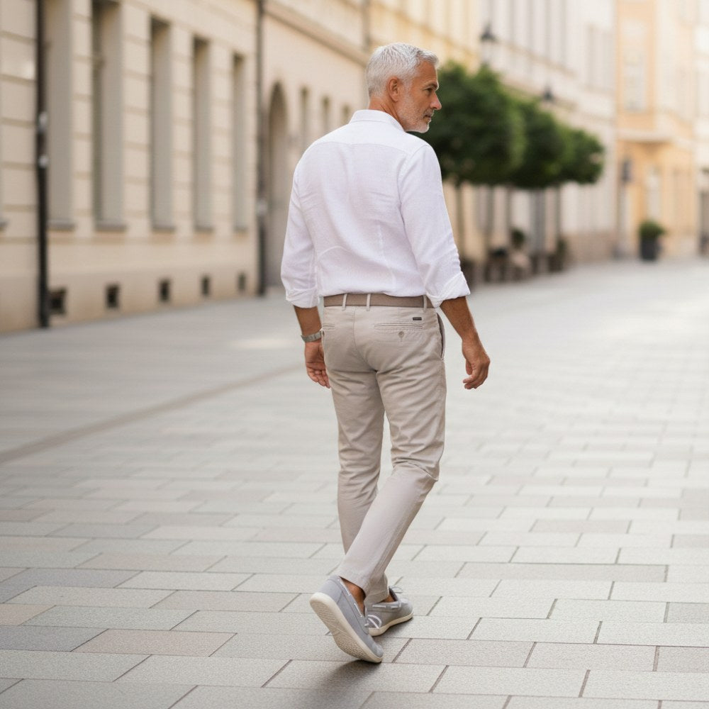 Den fleksible, hvite sålen muliggjør naturlig bevegelse, mens den pustende semsket skinn skaper et hyggelig klima for føttene dine. Uansett hvor lenge du er på veien, gir disse glidene deg den komforten du trenger for å føle deg komfortabel hele dagen.