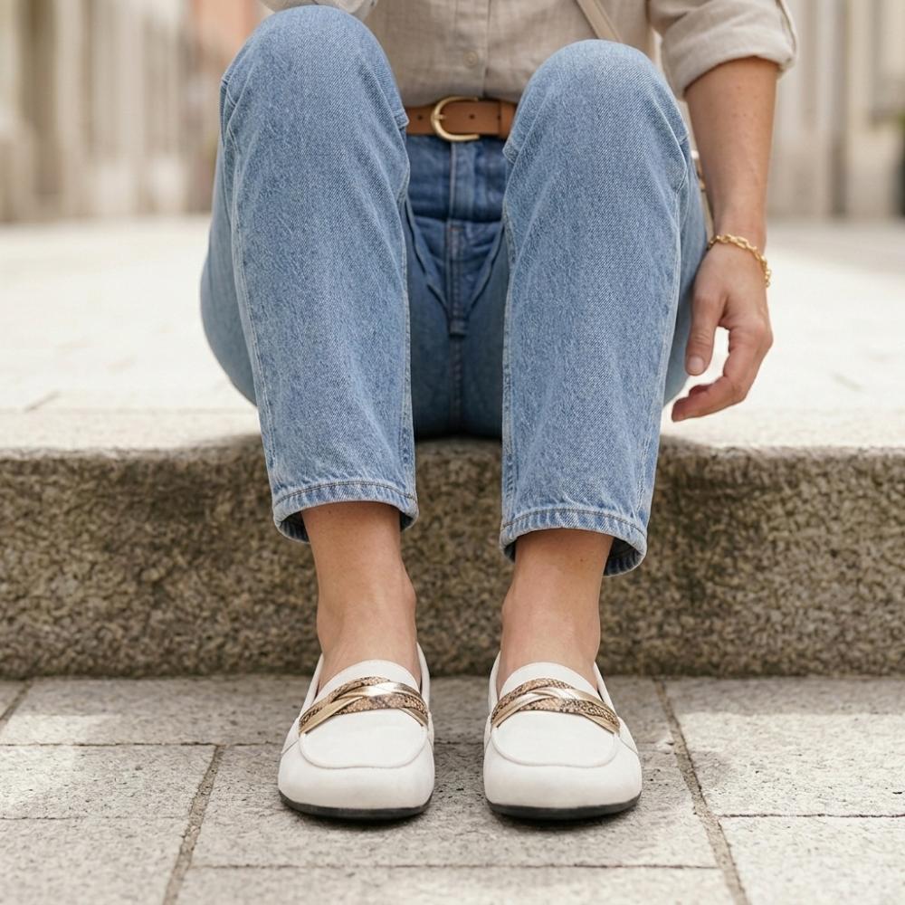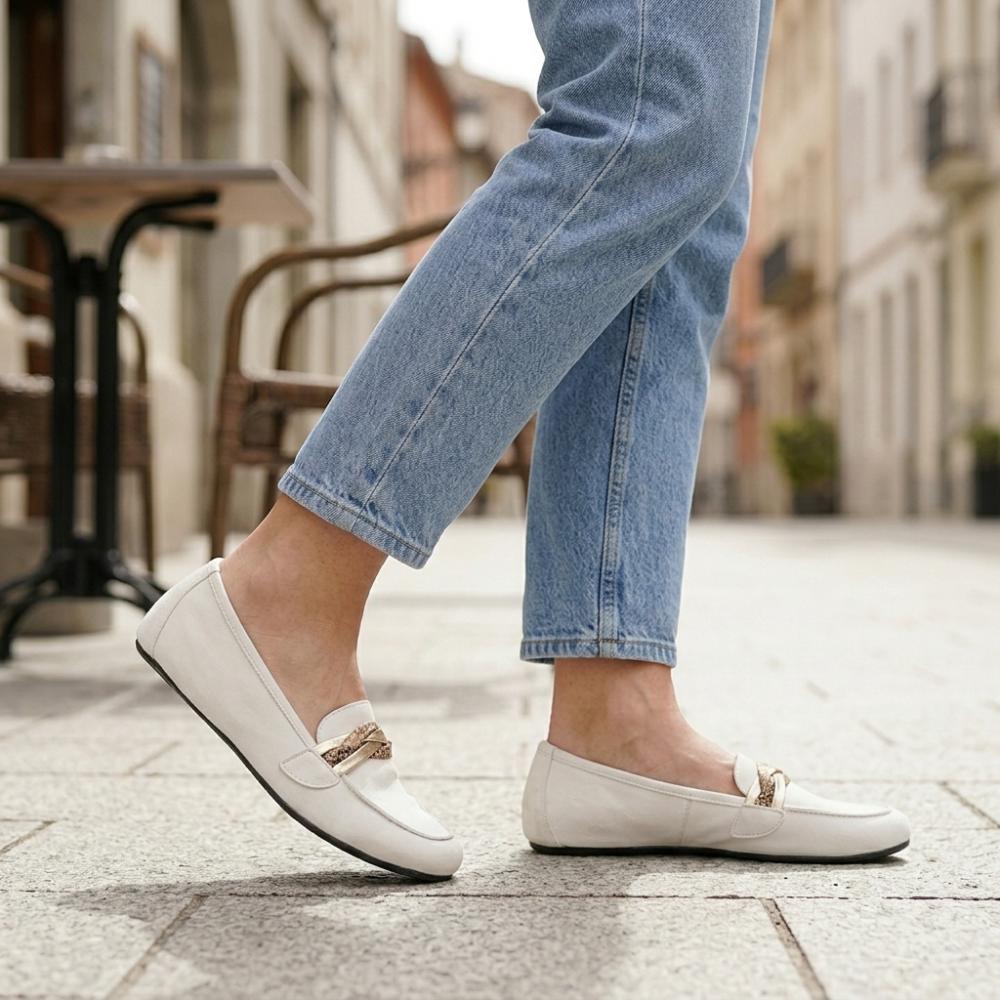 Leter du etter en barfotsko som er spesielt feminin? Her er han, vår Moccasin Qerp White vil inspirere deg.