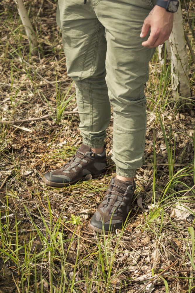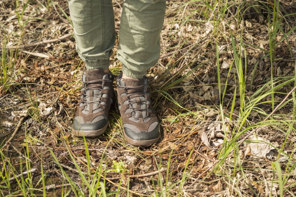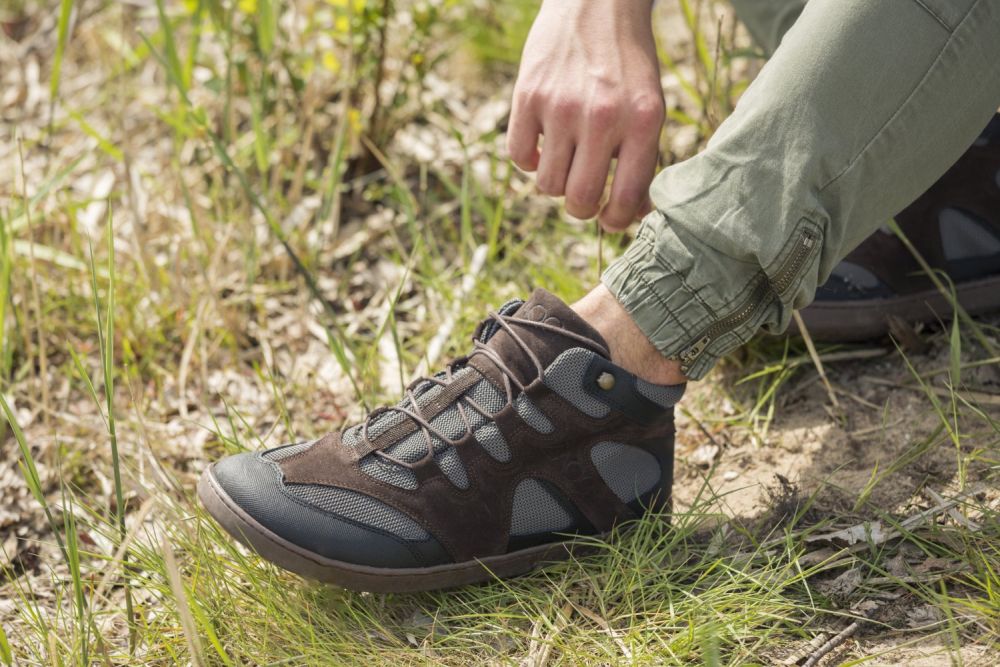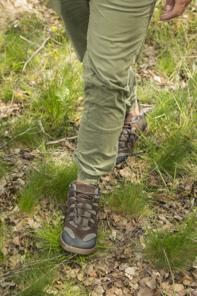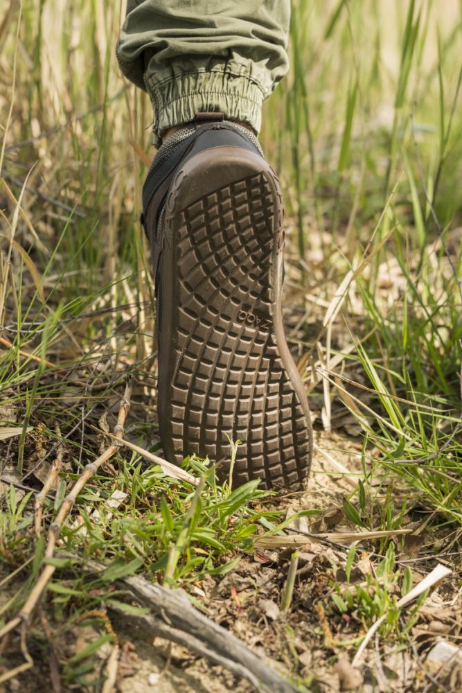 For Qinsley valgte vi et spesielt pustende nettvev, som også sikrer et hyggelig fotklima på lange turer. I forbindelse med den mørkebrune semsket skinn, ser denne barfotskoen rett og slett bra ut og er også ekstremt robust.