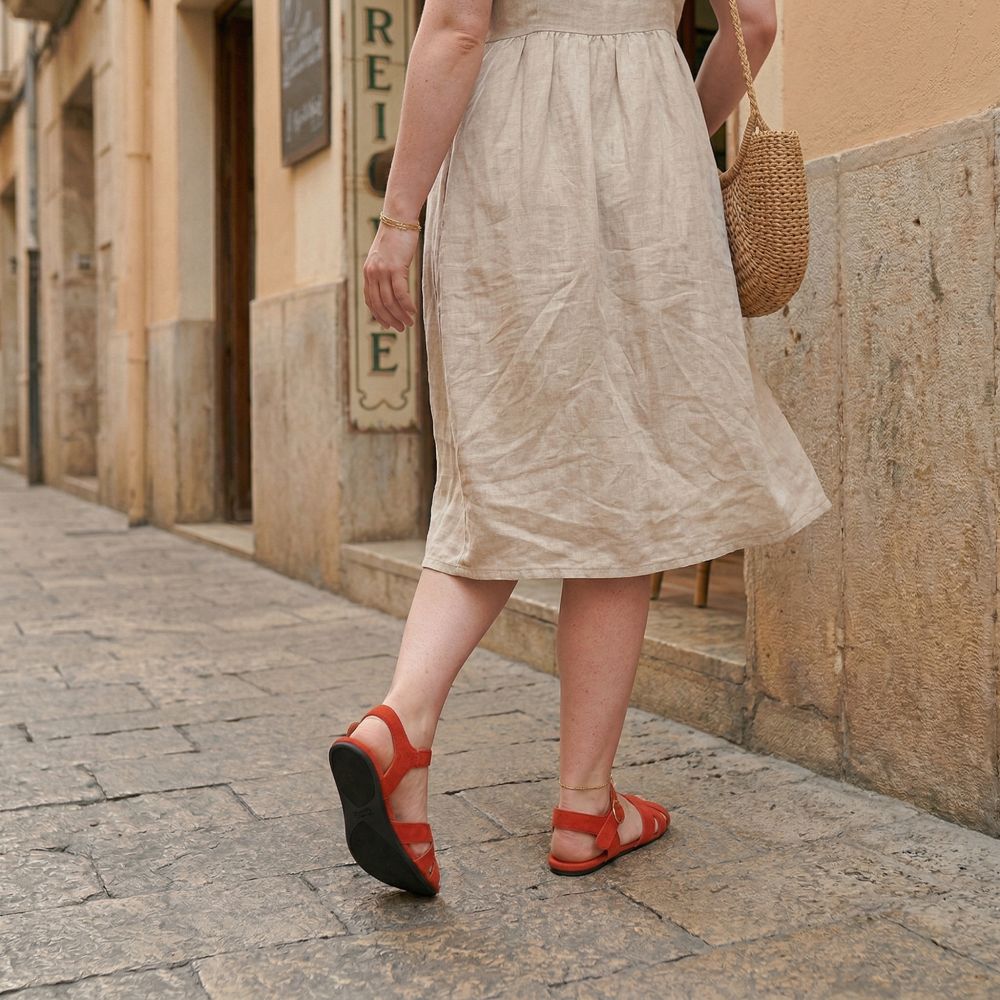 Ta tak i dine røde sandaler og gjør deg klar til å erobre verden med stil og komfort.