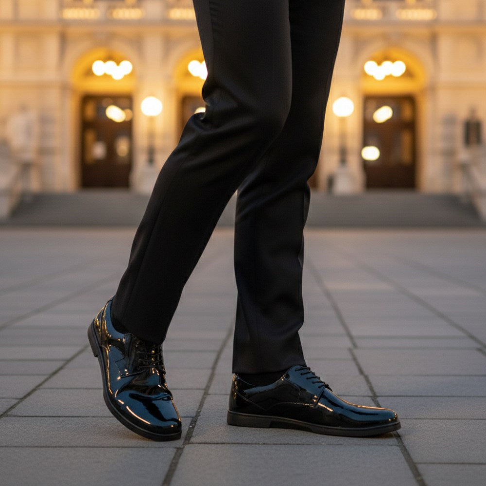 I verden av elegante herresko, oppfyller vår smoqing svart laget av svart maling skinn ikke bare de høyeste estetiske kravene, men kombinerer også komforten med barfot sko med tidløs eleganse. Denne krevende Clipper er mer enn bare en moteerklæring - det er en fusjon av stil og bekvemmelighet.