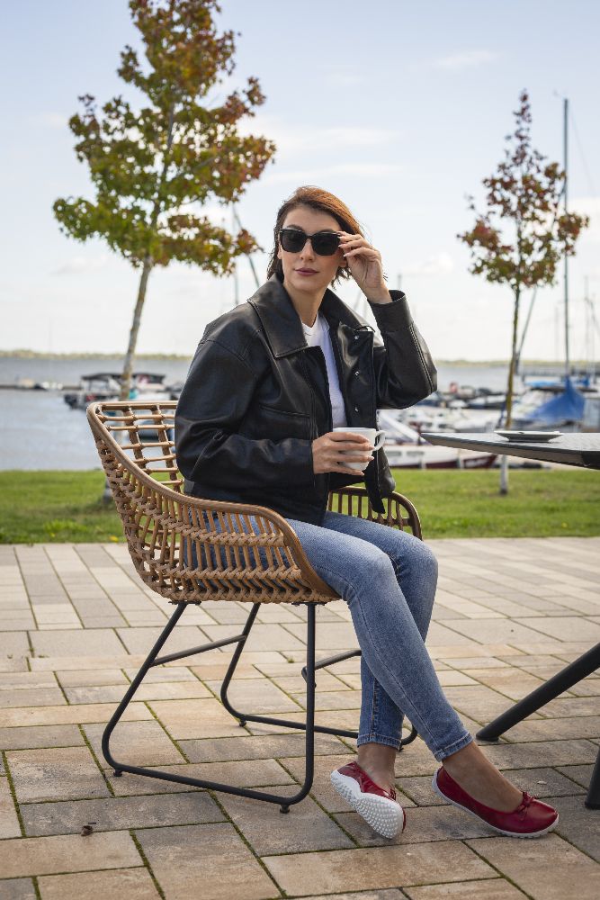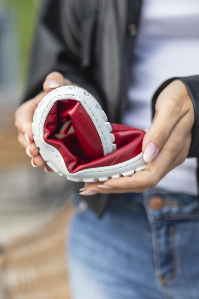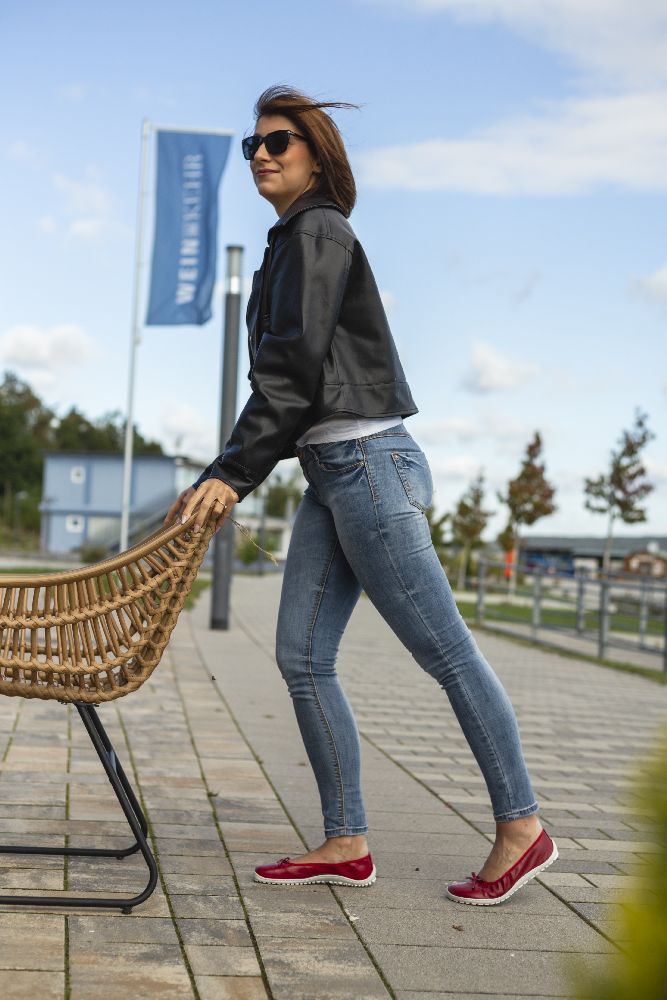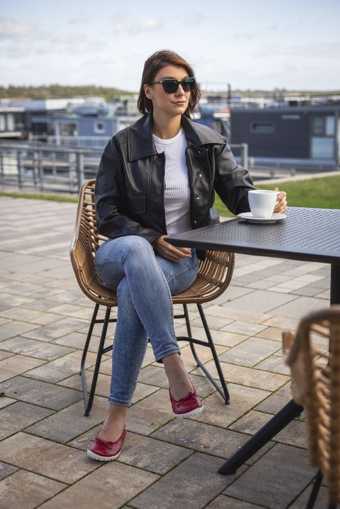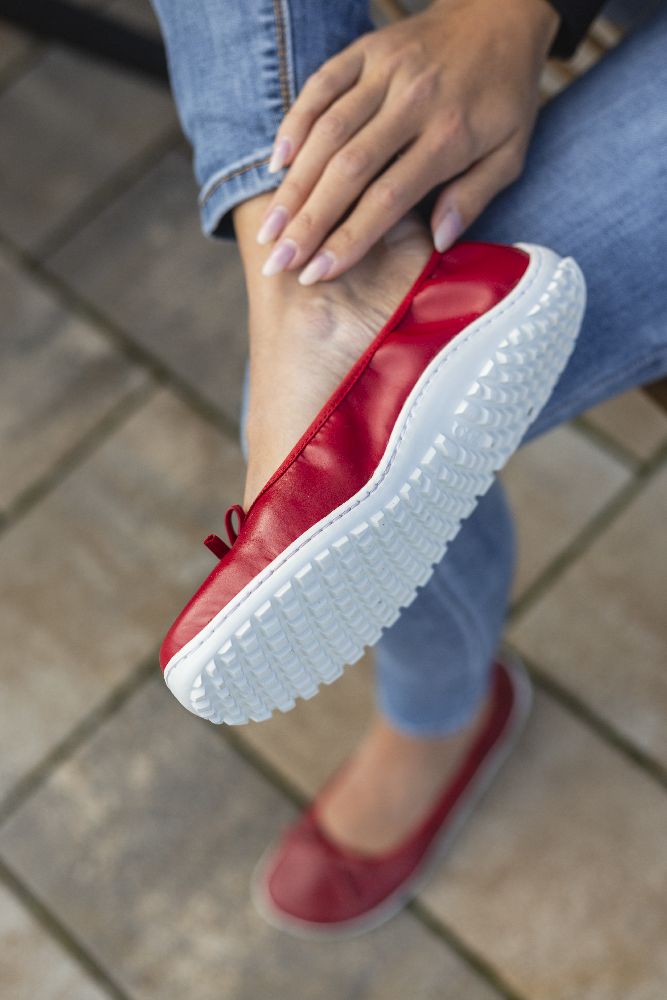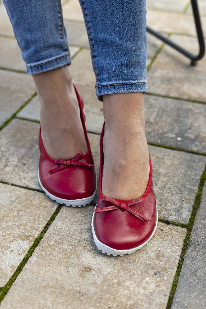 Det fine, mørkerøde glatte skinnet og den subtile sløyfen gir ballerinaen et delikat, feminint utseende. Gjennom den ødelagte sneakeren så det ser han sporty, frisk og moderne ut. Den barfotte sålen sikrer også godt grep og er samtidig så tynn og fleksibel at føttene dine kjenner gulvet med hvert trinn.